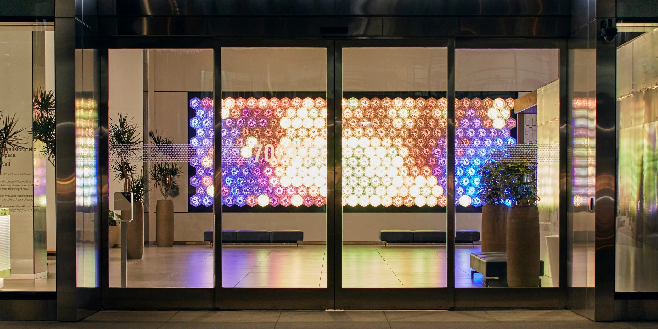 Chameleon Wall Chameleon WallScope Technical Design, Fabrication, InstallationCompleted 2022Location 1 Columbia Place, San Diego, CAType Interactive Wall FeatureClient / Artist Soso LimitedPhotography Ty Cole The Long Story